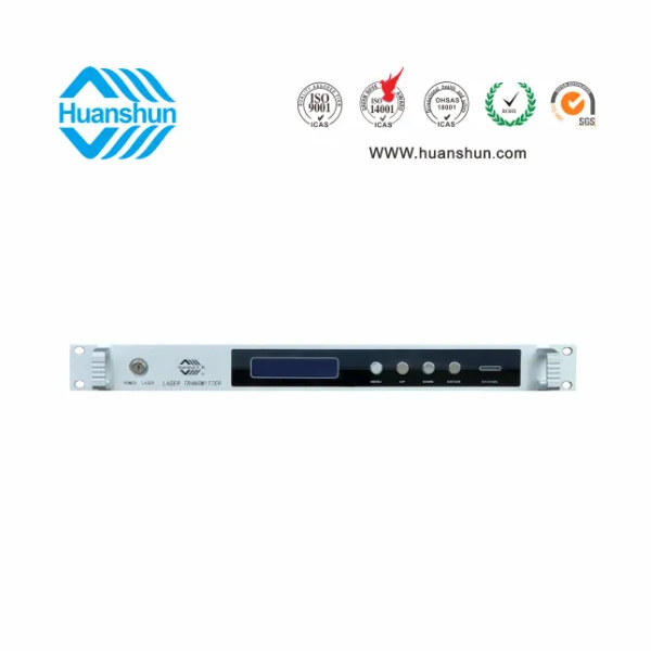 RF80 ± 5 dBuv 輸入,ITU 1550nm,  10 dBm - 插播和光可調損耗(約1.5dB) 輸出;1U標準機箱,雙模塊熱插撥電源,AC90  255V或DC-48V供電,RJ45標準網管(支持SNMP、WEB)