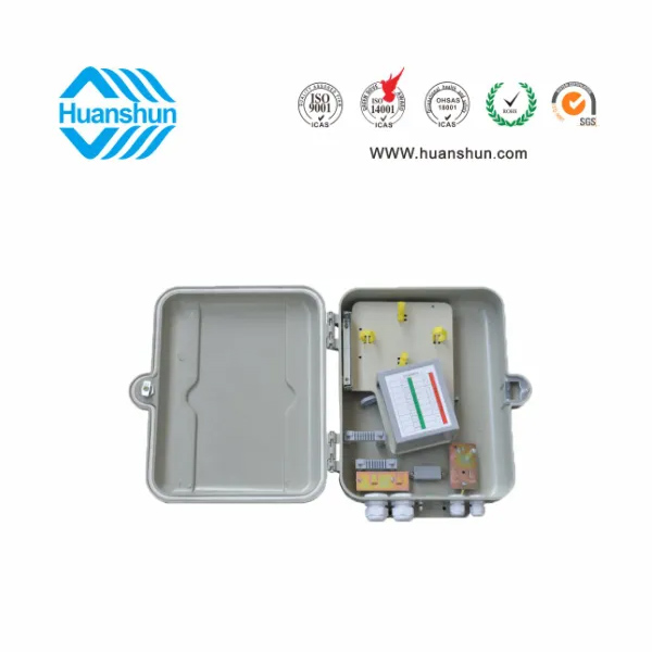 HSGFKSW-8/12/16/24/32/64光纜分纖箱采用SMC材料制作,外觀免噴漆,光澤度好,使用壽命達到25年以上。本產品符合YD/T2150-2010光纜分纖箱標準要求,適用于FTTH接入系統從分前端到終端環節中任何光信號中繼、光纜分纖和配置光分路等,集熔接、分光、配線于一體,室內野外環境下均可使用。