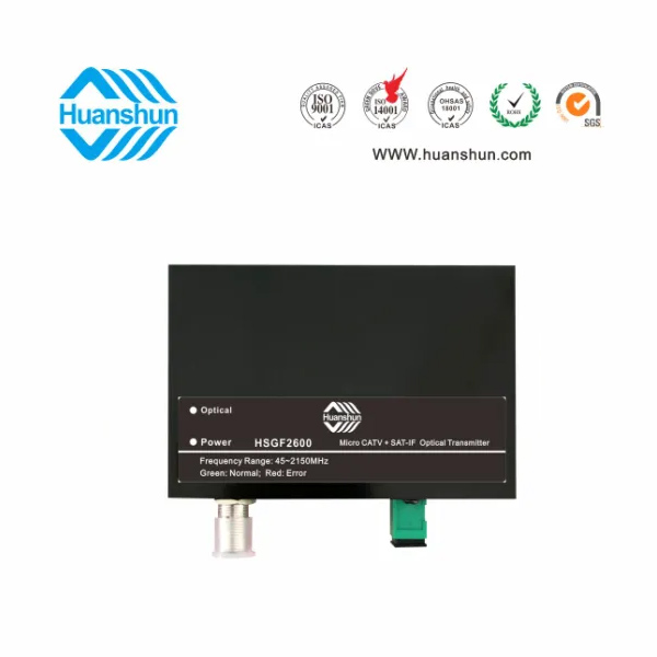 CATV&SAT-IF光發(fā)送機(jī) | HSGF2600-1302 | RF工作帶寬45~2150MHz,光輸出功率有2或3mW可選,型號(hào)后綴13代表1310nm波長(zhǎng),15則代表1550nm波長(zhǎng),最后2位數(shù)字02表示2mW,03則表示3mW,RF接口F型公制或英制(訂貨時(shí)說(shuō)明),光輸出接口SC/APC |