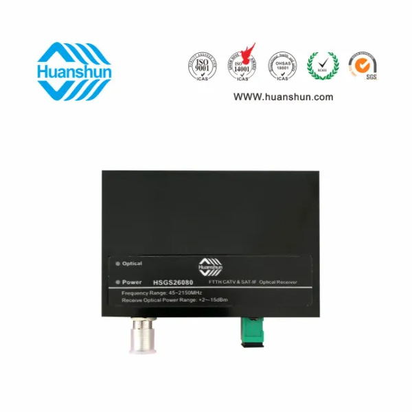 CATV&SAT-IF光接收機(jī) | HSGS26080 | RF工作帶寬45~2150MHz,光工作波長(zhǎng)1290~1600nm,光接收功率-8~0dBm/RF CATV80dBuv,SAT-IF65-75dBuv,RF接口F型公制或英制(訂貨時(shí)說(shuō)明),光輸入接口SC/APC |